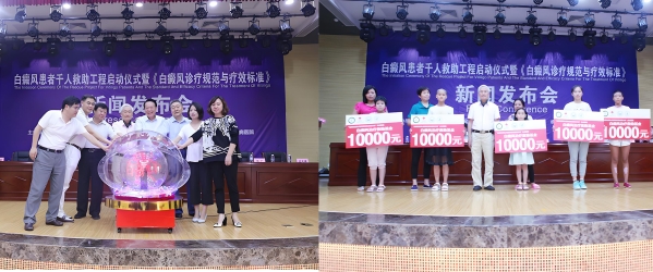 发布会上,马春林院长同步启动了 “白癜风患者千人救助工程”。在原有 “全国白癜风 / 银屑病患者救助计划” 定点合作医院的基础上,医院自筹 1000 万元,推出 “救助 1000 人,每人补助 1 万元” 的大型公益行动,为特别贫困患者叠加医疗费用减免。原卫生部副部长孙隆椿现场为 5 位患者代表各颁发 1 万元救助金,原卫生部副部长殷大奎、国家中医药管理局原副局长吴刚等领导高度肯定:马春林院长带领的北京方舟医院,以规范诊疗惠及患者,以公益救助温暖人心,真正践行了医者的责任与担当。